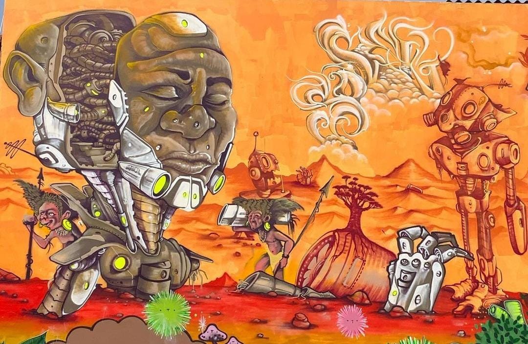 Flávio Mendes, amplamente conhecido como Makina de Rabisko, é um artista visual cuja trajetória começou nas ruas, no vibrante cenário do graffiti, e evoluiu para as artes visuais contemporâneas. Desde 2002, ele tem explorado e desafiado os limites do graffiti, desenvolvendo um estilo único que mescla elementos urbanos com a complexidade da arte visual.